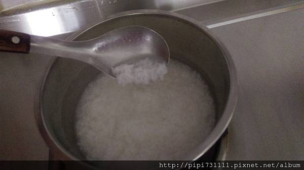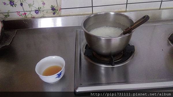 首先來煮稀飯,用的是前一晚的剩飯加適量的水,要吃稀一點水就多放喔,放入電鍋。外鍋放三杯水。這樣煮出來的稀飯很剛好唷~~